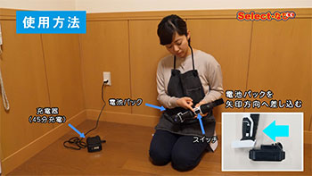 - 充電した電池パックを本体にをはめ、スイッチを入れると簡単に使用できます!