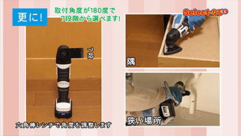 - 先端部品の取付角度が180度・7段階から調整ができ、使用場所に応じて作業ができます!