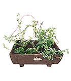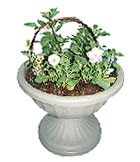 プランターにゴロ土を入れ、プランターの土を少し入れます。針金で作ったフェンスをプランターに入れます。植え込む植物をポットのまま並べ、位置を決めます。ポットから外し、植え込みます。
