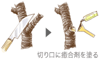 【治療】病気の枝は、見つけ次第付け根から取り除きます。切り口には癒合剤を塗ります。