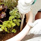 プランターの中で土の空間ができていないか、すき間なく土を入れます。