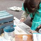 まずはガーデニング用水性塗料で色づけをします。