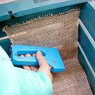 板のすき間から土がこぼれないように麻布を内側全体に敷きます。