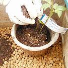 実際に土を入れていきます。これは紙ポットに植えるブラックベリー。