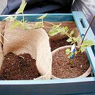 ブラックベリーはハーブの根に負けないよう紙ポットに植えます。