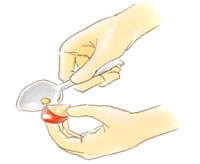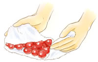 耐熱皿にオーブン シートを敷き、散らすように「4」を置いていきます。それをトースターで15〜20分程度、温めながら乾燥させます。こげないように注意して下さい。※ド ライハーブのクイック乾燥を電子レンジでやるのと同様に、電子レンジでやってしまうと、トマトソースのようなベチャベチャな状態になってしまうので注意し て下さい。これでローズヒップのドライハーブができました。