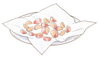 お皿かパットにペーパータオルを敷き、散らすように「4」を置いていきます。このまま風通しの良い日陰で乾燥させます。1ヶ月程度かかります。湿気でカビないように注意して下さい。