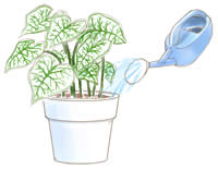 屋外の日当たりの良い場所で育てている場合は、生育中の5月〜9月頃までは、表土が乾いたらたっぷりと水を与えます。日陰や室内で育てる場合は、やや乾かしぎみに水やりをします。10月からは水やりをやめます。