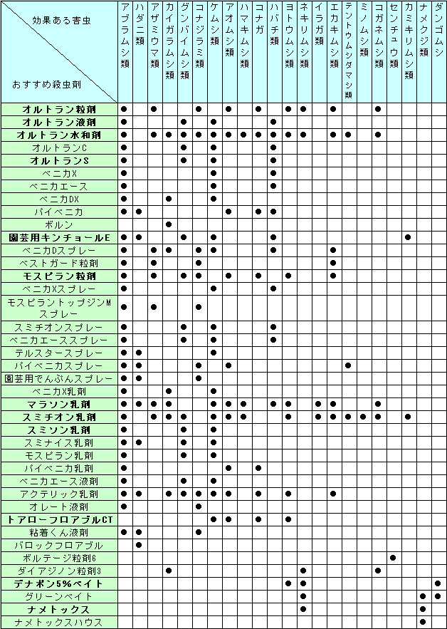※薬剤と適用害虫は、対象植物によって異なります。商品の適用植物をよく確認して使用してください。薬剤の選択、及び使用の際は、必ず商品の説明をよく読んで、記載内容に従って使用してください。