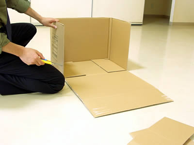 段ボールの上面と前面をカットします。