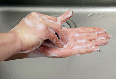 指を組んで、両手の間を揉み洗いします。