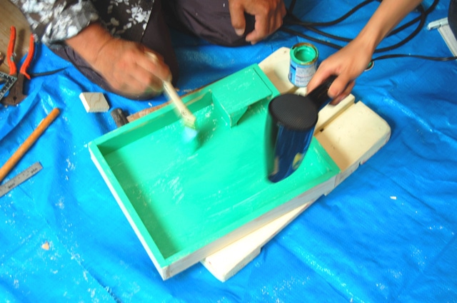 木目に沿って、均一に色ムラが出ないように塗装します。
