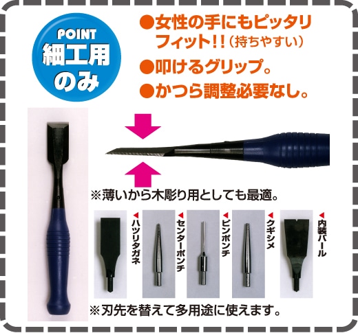 ・刃先を替えて多用途に使えます。