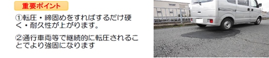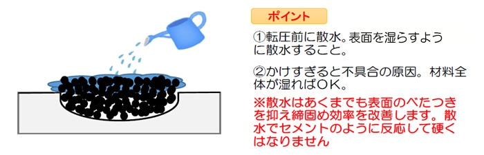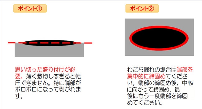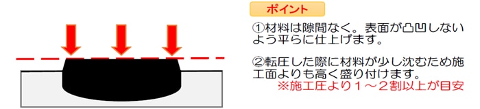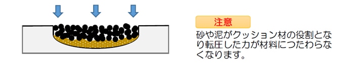 ※必ず転圧を行って下さい。また、施工後に継続的に転圧が加わらないと硬化不良になる恐れがあります。
