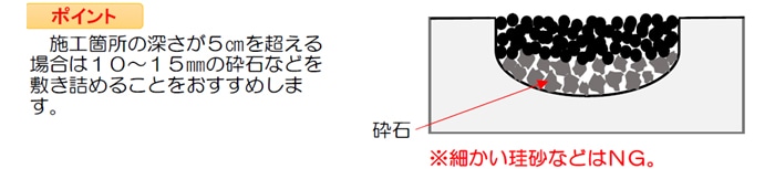 下地が砂状で弱い場合や施工深さが深い場合は下地を強固にして下さい。