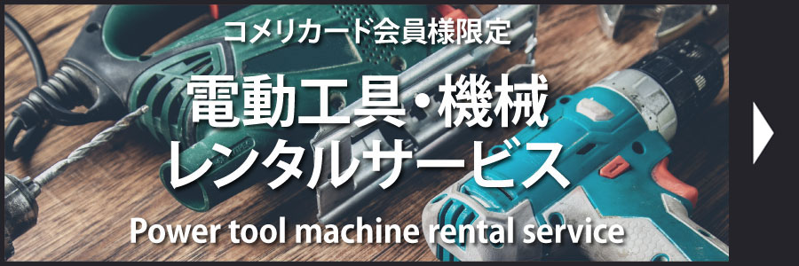「工具・機械レンタルサービス」では、現場作業で必要な電動工具や機械の貸出を行っております。プロ向けの大型機械も豊富に揃ってます。