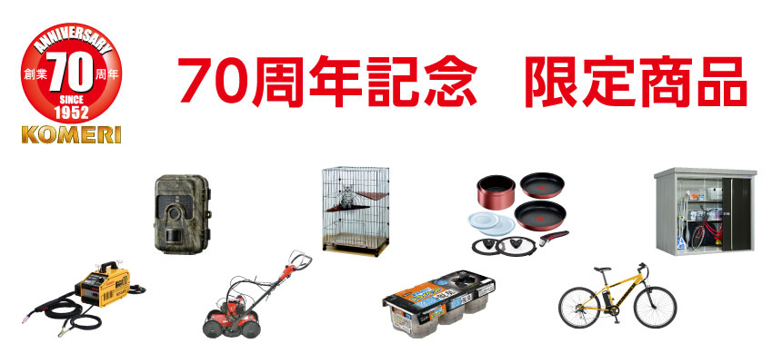 コメリ創業70周年を記念した特別企画の商品をご紹介いたします。今回限りの限定セット商品や特別ポイント付き商品など、大変お買い得な商品を取り揃えました。コメリドットコムはもちろん、コメリ各店でもご購入いただけます。