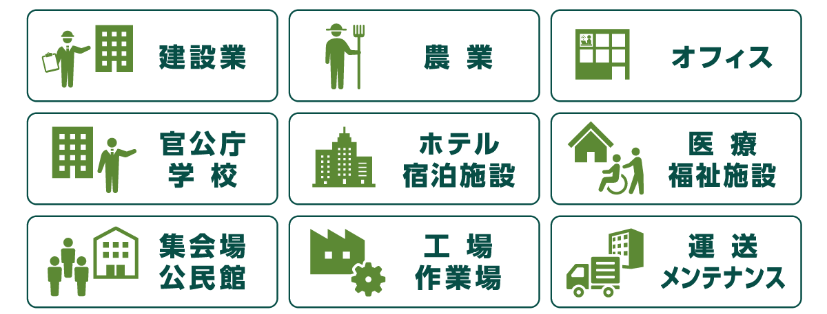 ビジネスに必要な商品をオフィスや工場、施設からお選びいただけます。