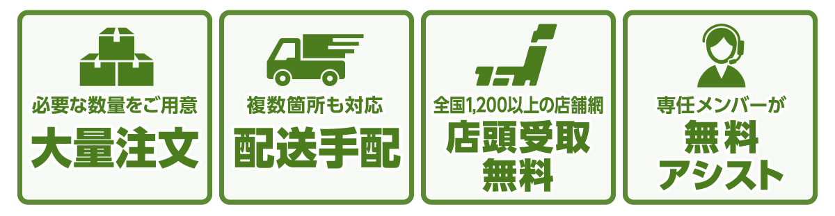 大量発注・定期購入・商品提案・決済手段など最適な調達方法をご提案致します。