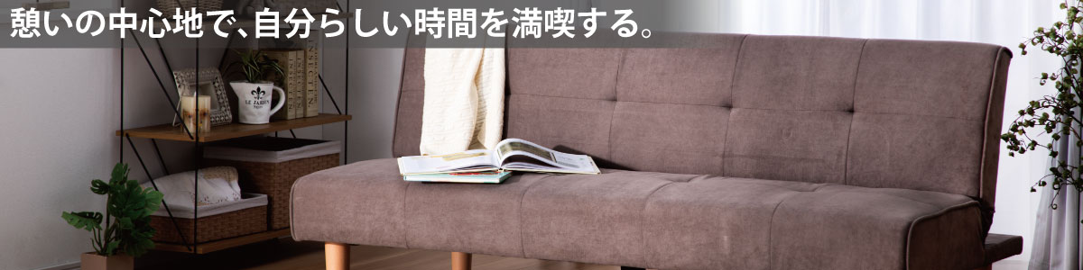ソファにもベッドにもなる万能ソファは、背もたれ3段階リクライニング可能で、硬めの座り心地と快適な使用感を提供します。丸脚を回すだけの簡単組立でローソファにもなり、脚の高さは約20cmで掃除ロボットにも対応するなど、収納性も利便性も兼ね備えています。