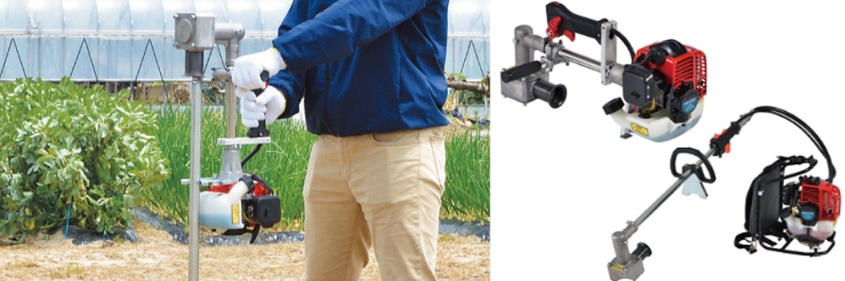 ビニールハウスの施工時にハウスパイプを設置するための穴を開けたり、電気柵やフェンスを設置する際の支柱を入れるための穴を開けるのに便利な穴掘り機。作業が楽になるだけでなく、より短時間で行えるようになります。