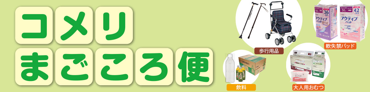 大人用おむつや食品、飲料水など、持ち運びが大変な日用品をご自宅までお届けします。重たい荷物を運ぶ負担を解消し、毎日の暮らしにゆとりを。「コメリのまごころ便」が、離れて暮らすご家族や日々の生活をサポートします。