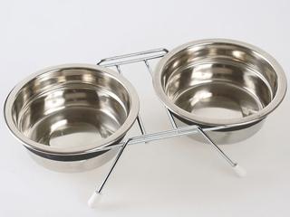 ■水とフードのツインディッシュ。2つのステンレス食器とスタンドのセット。