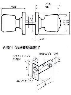 材質:ステンレス。仕上げ:ヘアーライン。内締錠2型。(寝室・個室用、ツマミ鍵付き)