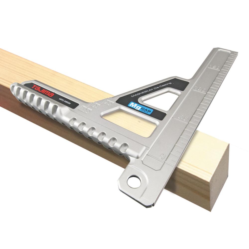 軽くて丈夫な素材マグネシウムを採用しています。道具袋にラクラク収まる小型設計です。5寸材・破風板・間柱などをスムーズにカットできる最適な長さです。200mm±0.2mm以内の高精度です。高さ9mmの突き当てと握りやすいハンドル形状で、材料をしっかりホールドします。