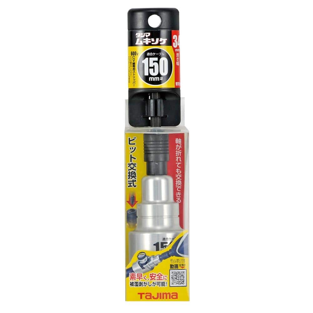 ●適応ケーブルサイズ:150mm2。●剥き幅:34mm。●対応インパクトドライバー:14.4V~。●本体:アルミ。●刃:スチール。