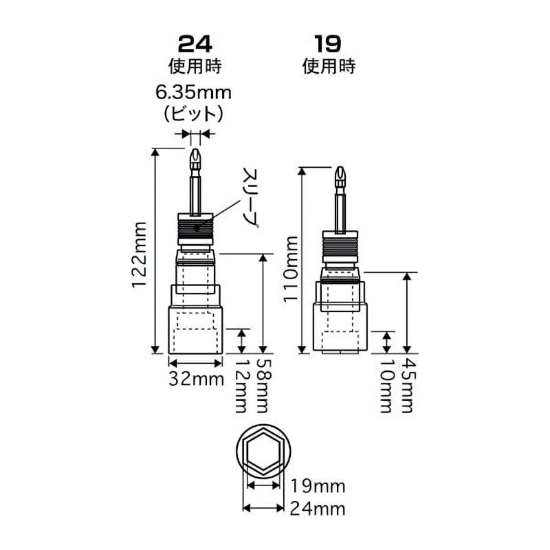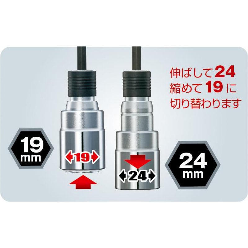 ●呼び寸法:19・24mm。●角数:6角。●本体:クロームバナジウム鋼。