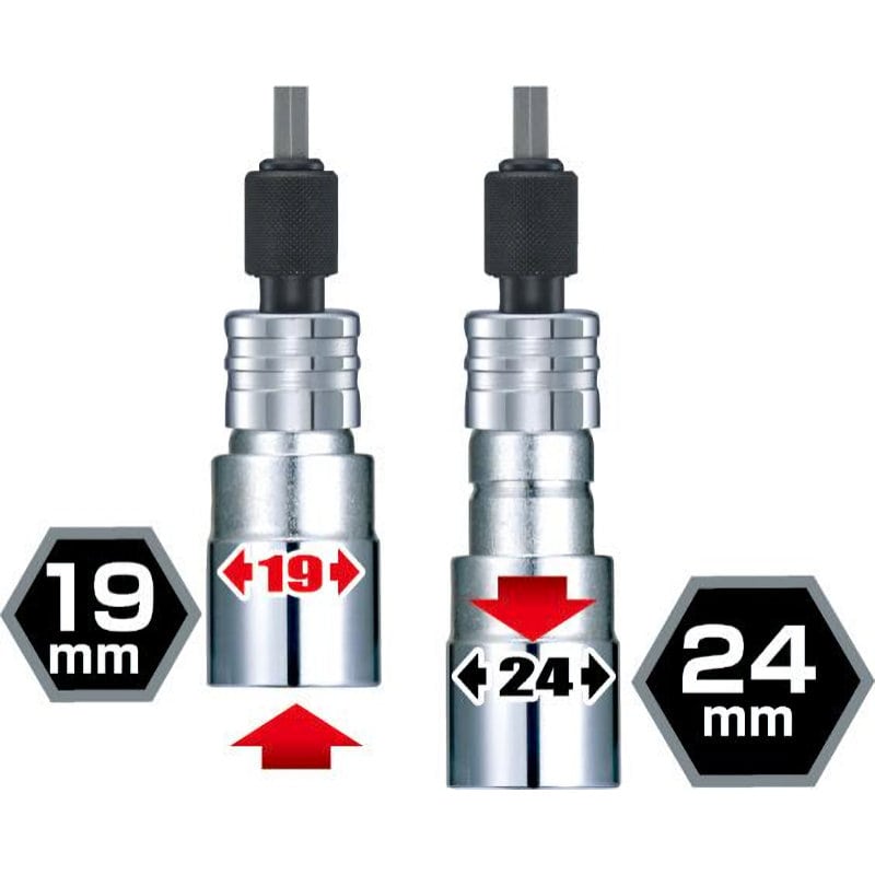 ●呼び寸法:19・24mm。●角数:6角。●本体:クロームバナジウム鋼。