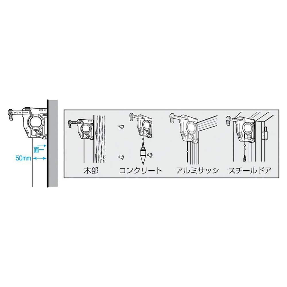 自動巻式です。木部、鉄部、アルミサッシ、コンクリートに取付可です。超強力磁石を採用しています(磁束密度130mT)。ケースはABS樹脂ボディエラストマー樹脂で一体成型滑りにくいです。重さ100g~1000gの下げ振りに対応します。