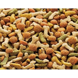 原材料・成分:穀類、大豆、肉類(チキンミール、チキンエキス等)、油脂類(パーム油、大豆油)、家禽類、タンパク加水分解物、ビートパルプ、野菜類(トマト、ほうれん草、にんじん)、ビタミン類(A、B1、B2、B6、B12、D3、E、K3、コリン、ナイアシン、パントテン酸、ビオチン、葉酸)、ミネラル類(亜鉛、カリウム、カルシウム、クロライド、セレン、鉄、銅、ナトリウム、マンガン、ヨウ素、リン)、アミノ酸類(メチオニン)、着色料(青2、赤102、黄4、黄5)、酸化防止剤(BHA、BHT、クエン酸)、pH調整剤、保存料(ソルビン酸K)