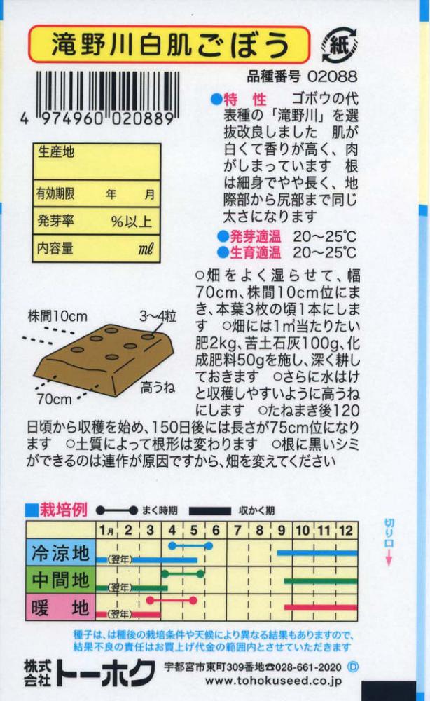 ●掲載のパッケージ画像(表側・裏側)に記載されている蒔き時期、収穫時期、発芽適温、発芽率、品種特長、その他注意事項をよくご確認の上、ご注文ください。