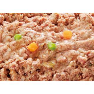 原材料・成分:肉類(チキン、ビーフ、家禽、ラム、ポーク等)、野菜類(にんじん、ほうれんそう)、米、食物繊維、ひまわり油、マリーゴールドミール、トマトパウダー、ビタミン類(B1、B6、B12、C、D3、E、コリン、パントテン酸、葉酸)、ミネラル類(Ca、Cl、I、K、Mg、Mn、P、Se、Zn)、アミノ酸類(タウリン)、増粘多糖類、pH調整剤、EDTA-Ca・Na、発色剤(亜硝酸Na)
