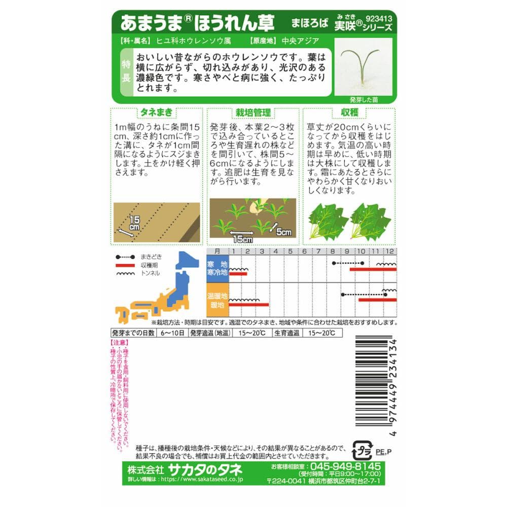 おいしい昔ながらのホウレンソウです。葉は横に広がらず、切れ込みがあり、光沢のある濃緑色です。寒さやべと病に強く、たっぷりとれます。(べと病抵抗性:R-1、4)