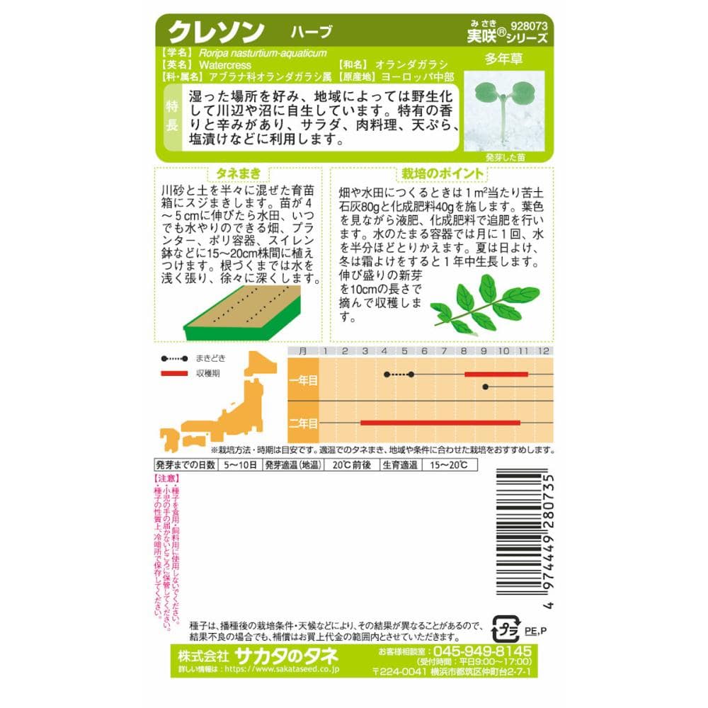 湿った場所を好み、地域によっては野生化して川辺や沼に自生しています。特有の香りと辛みがあり、サラダ、肉料理、天ぷら、塩漬けなどに利用します。