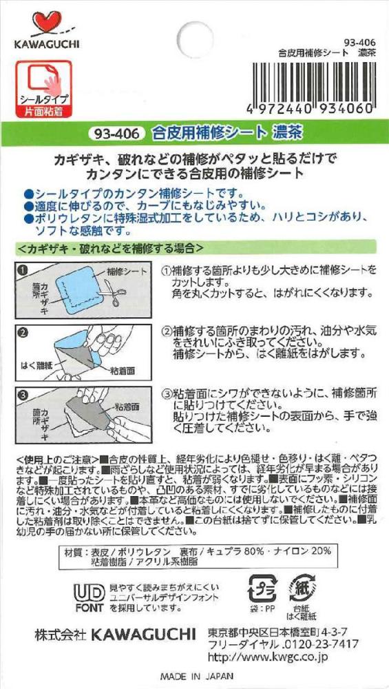 〈材質〉表皮:ポリウレタン 裏布:キュプラ80%ナイロン20% 粘着樹脂:アクリル系樹脂
