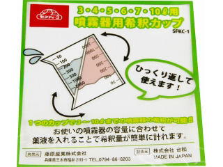 薬剤の希釈。 噴霧器本体タンク容量3.4.5.6.7.10Lタンクに対応します。 通常のバケツ等での希釈作業をせず、薬液をカップ目盛まで入れタンクに注ぎ、後は適正量の水を入れるだけの簡単設計です。