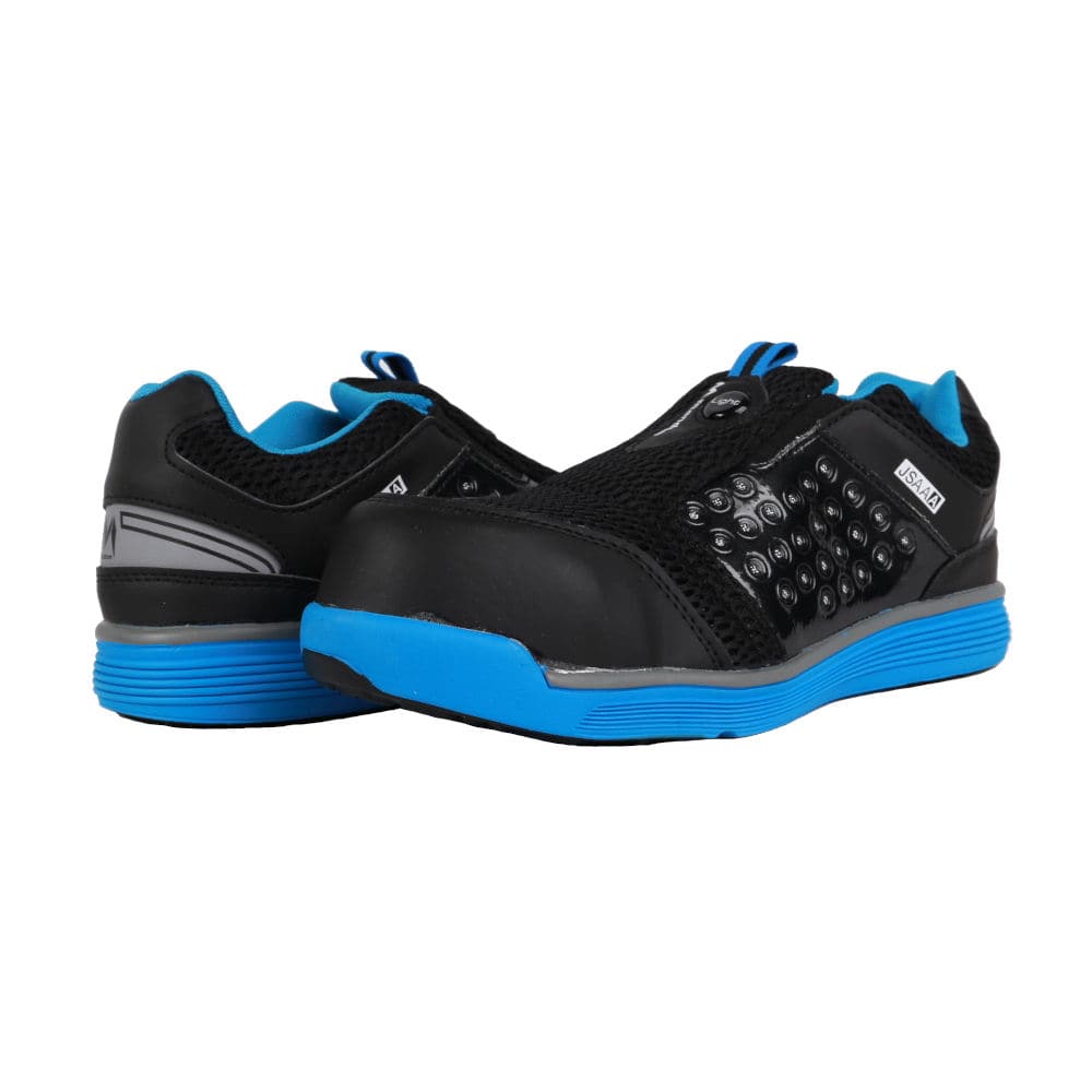 先芯の入った安全靴・作業靴には、「JIS(日本産業規格)」と「JSAA(公益社団法人日本保安用品協会)」が定める2つの規格があります。それぞれ安全性と耐久性を測る試験をし、JIS合格品を[安全靴]、JSAA認定品を[プロテクティブスニーカー(プロスニーカー)]と呼んでいます。JIS合格品は甲被が革製または総ゴム製・総高分子製(安全長靴など)に限られ、人工皮革製が多いJSAA認定品と比べ甲被の耐久性も高く、はく離抵抗の試験においても人工皮革製のJSAA認定品より高い耐久性が求められます