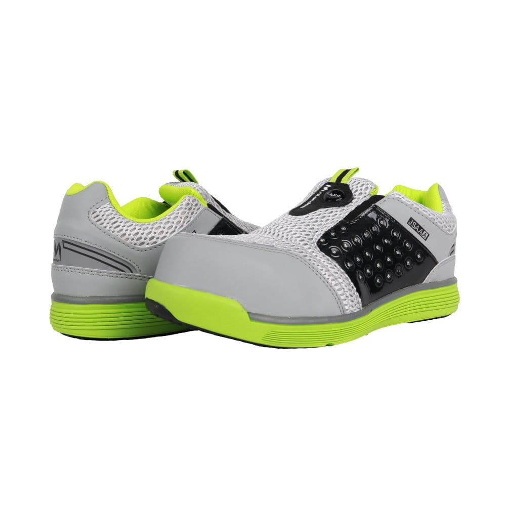 先芯の入った安全靴・作業靴には、「JIS(日本産業規格)」と「JSAA(公益社団法人日本保安用品協会)」が定める2つの規格があります。それぞれ安全性と耐久性を測る試験をし、JIS合格品を[安全靴]、JSAA認定品を[プロテクティブスニーカー(プロスニーカー)]と呼んでいます。JIS合格品は甲被が革製または総ゴム製・総高分子製(安全長靴など)に限られ、人工皮革製が多いJSAA認定品と比べ甲被の耐久性も高く、はく離抵抗の試験においても人工皮革製のJSAA認定品より高い耐久性が求められます