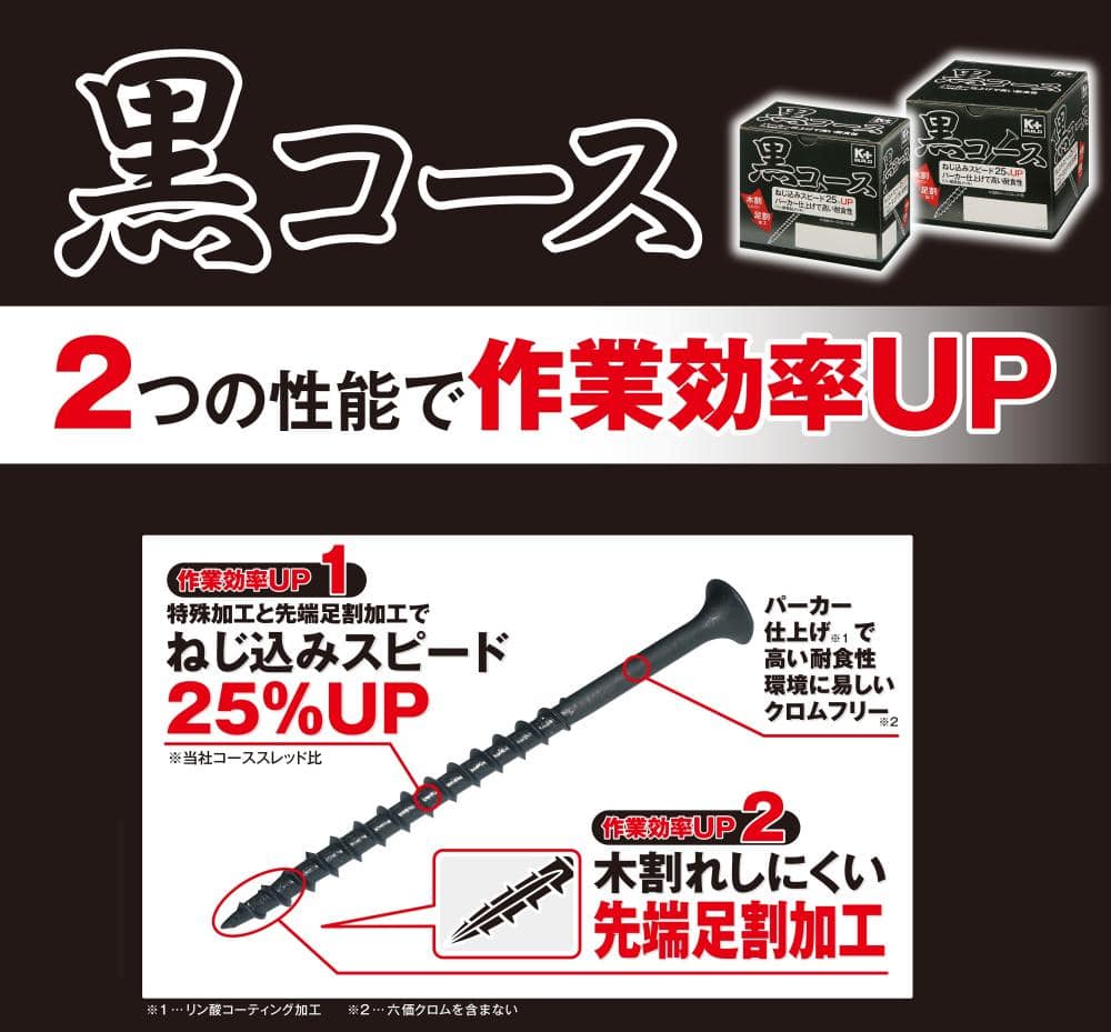 ●リン酸亜鉛メッキにより、ねじ込み時の摩擦を軽減。ねじ込みスピードが従来のコーススレッド比25%もアップしました。