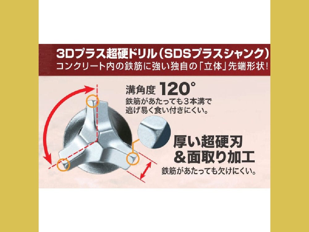 ・鉄筋が当たっても3本溝で逃げ易く食いつきにくい。