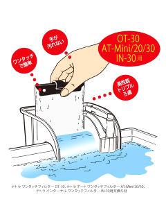 手を汚さずにワンタッチで交換できます。独自の構造が物理、生物、吸着の高性能トリプルろ過を実現します。水の汚れを効率良くクリーンにします。