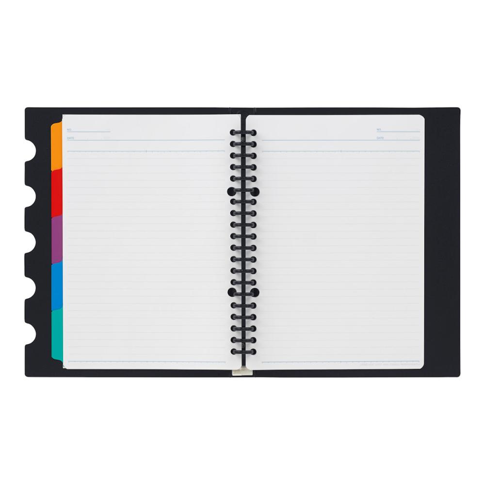 表紙からのぞく5山のインデックスですっきり収納、知りたい情報に速やかに辿り着けます
