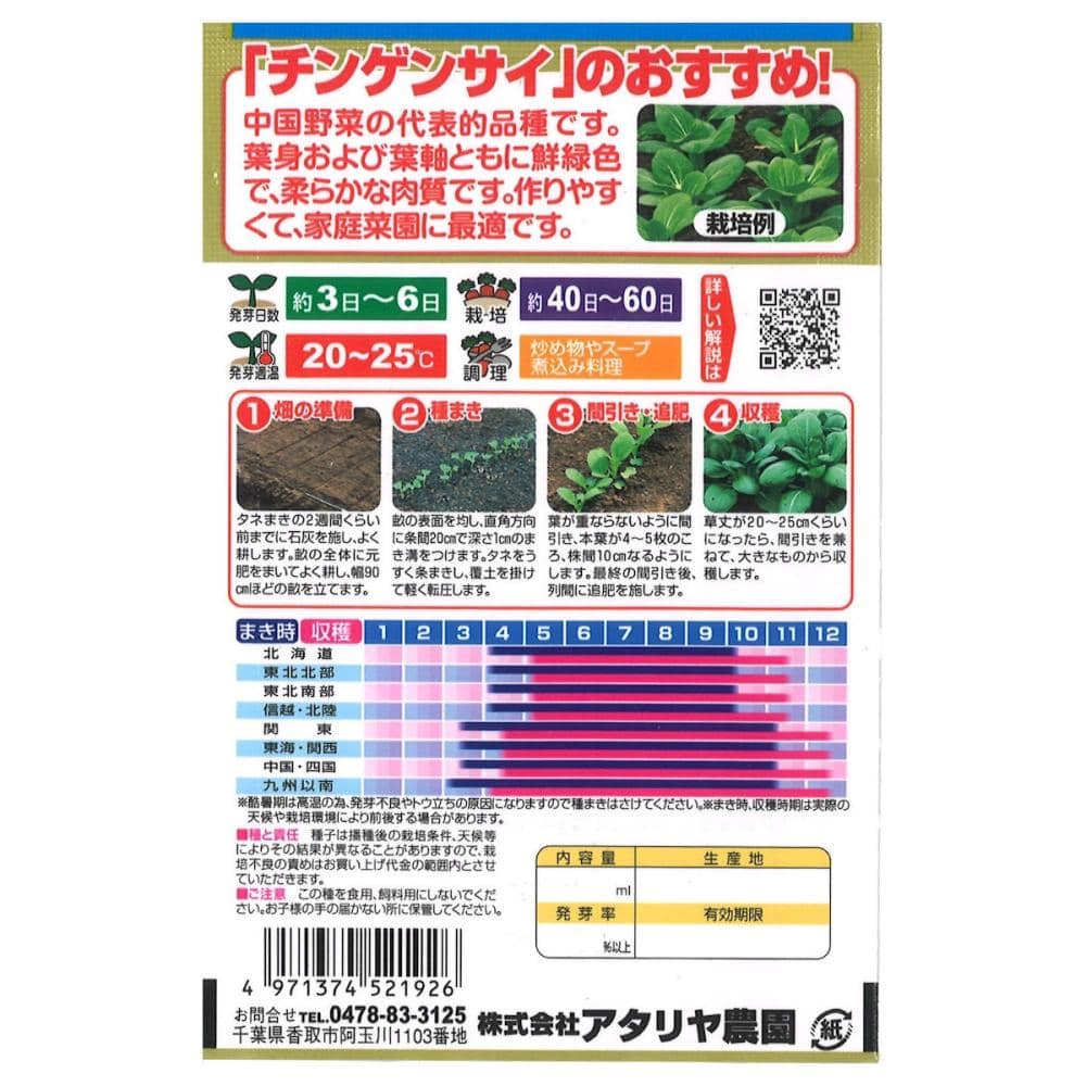 中国野菜の代表的品種です。葉身および葉軸ともに鮮緑色で、柔らかな肉質です。作りやすくて、家庭菜園に最適です。