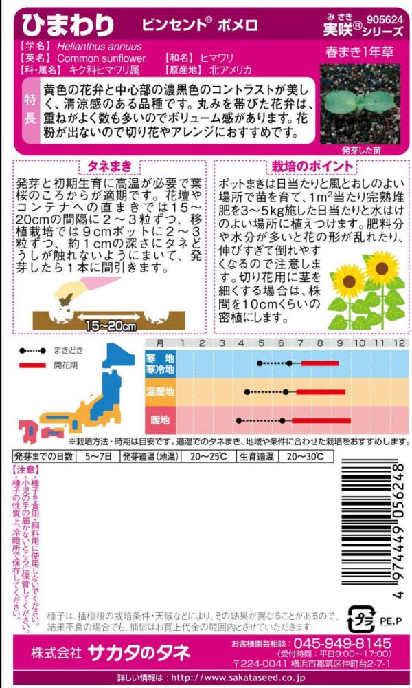 ●掲載のパッケージ画像(表側・裏側)に記載されている蒔き時期、収穫時期、発芽適温、発芽率、品種特長、その他注意事項をよくご確認の上、ご注文ください。