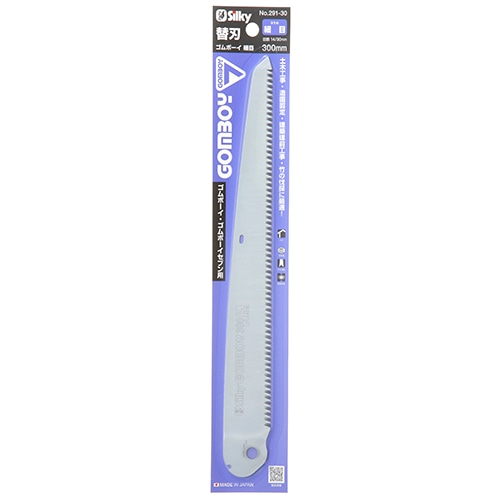 ●刃長:300mm(細目)。●目数(30mm):14枚目。●刃厚:1.3mm。●切幅:1.2mm。●全長:330mm。●重量:60g。●アサリ無し・衝撃焼入・未来目。●ハードクロームメッキ。●刃:鋼(SK-4)。