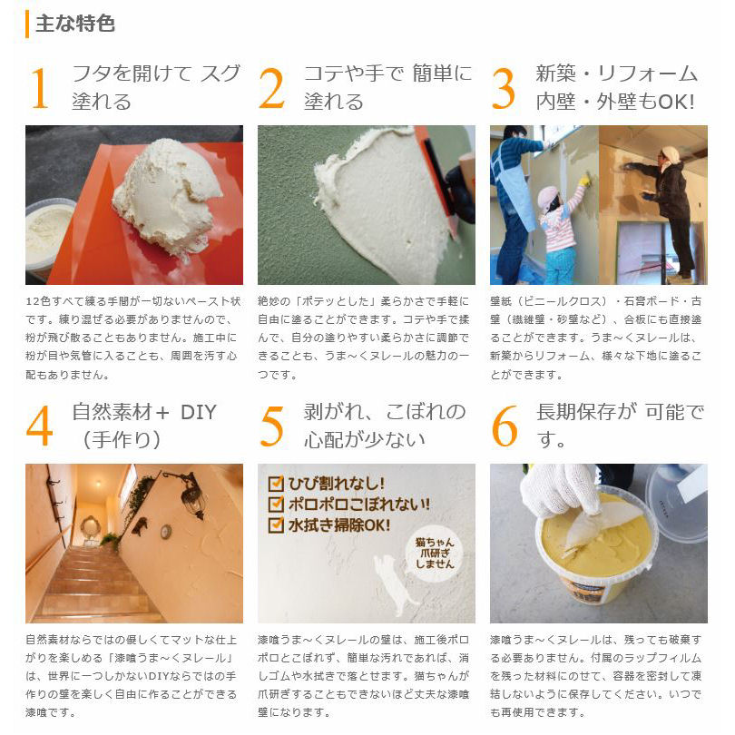 ●作業性がよく漆喰壁を自分の手で楽しく簡単に濡れます。
